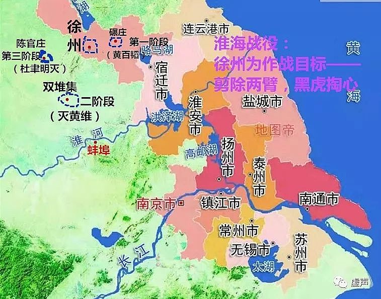 至于淮河战役。不被理解中有详细描述,这里不再重复,只是简单讲一点概况。整个过程还是老三段: